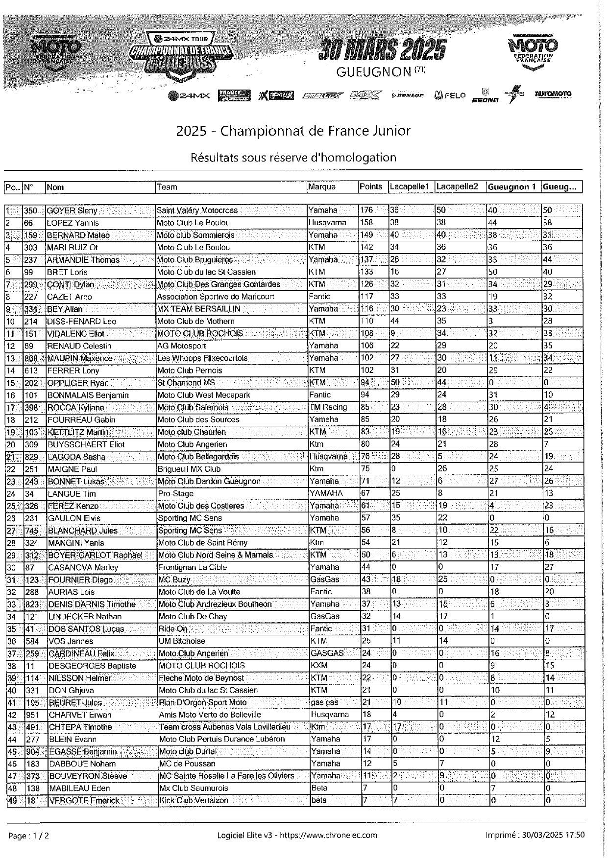 Résultats du Championnat de France 24MX Tour – Épreuve du 30 mars à Gueugnon